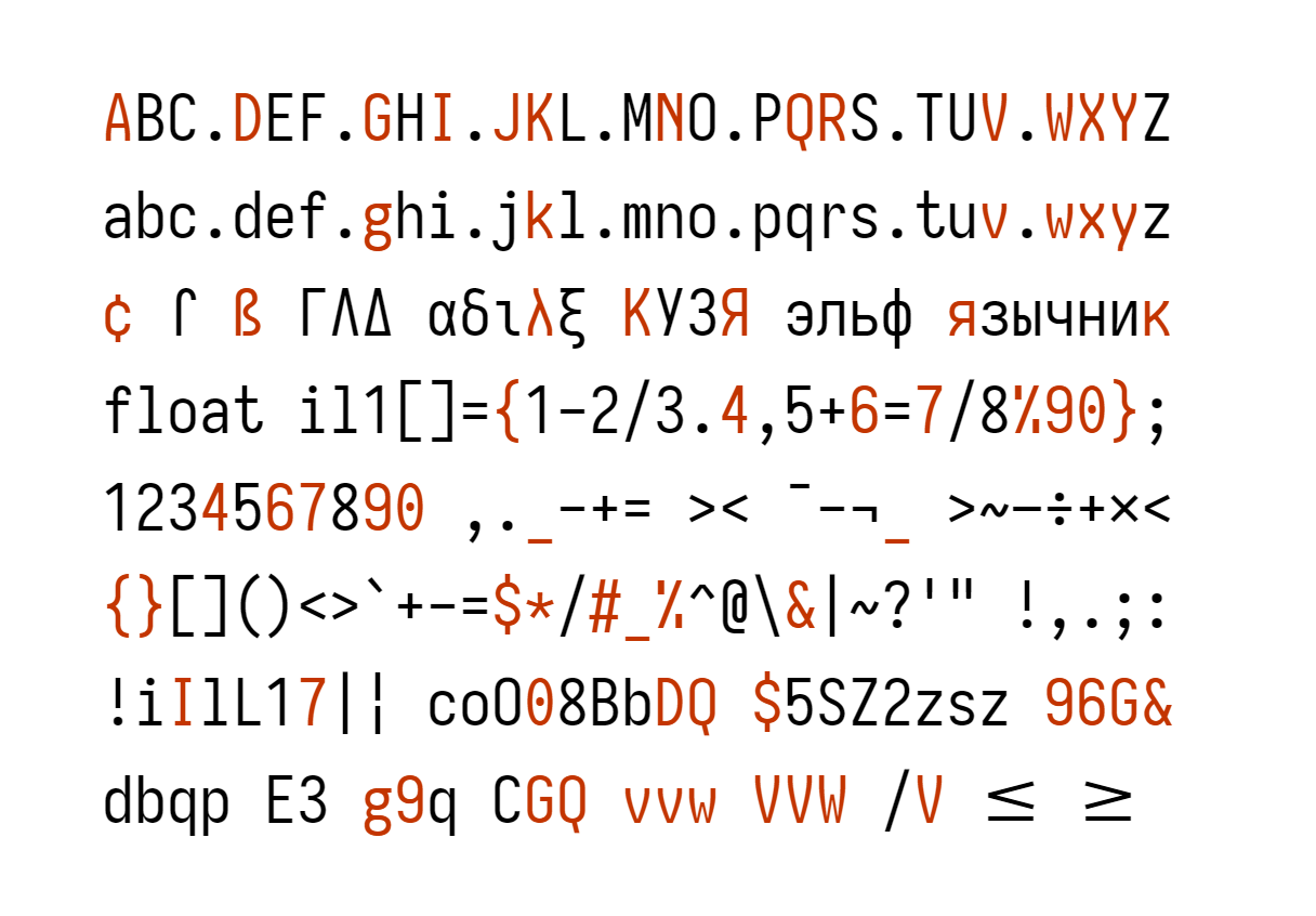 Iosevka is an open-source, sans-serif + slab-serif, monospace + quasi‑proportional typeface family, designed for writing code, using in terminals, and preparing technical documents.