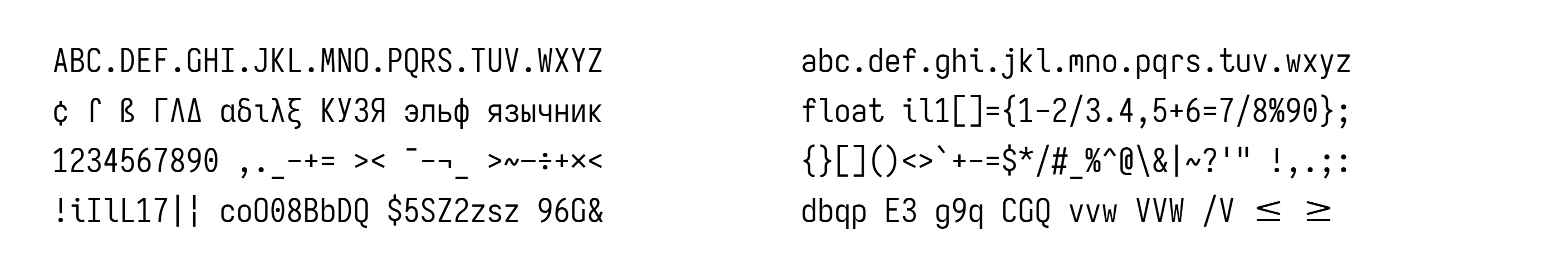- Fixed: Exact monospace font without ligatures and wide glyphs. Since some environments cannot interpret Iosevka or Iosevka Term as monospace, and have difficulties with ligatures included, you can use Iosevka Fixed as an alternative.